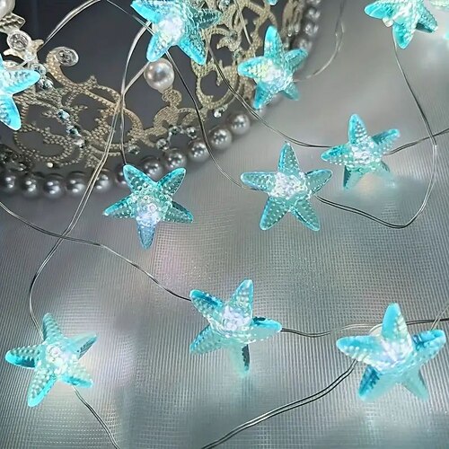 Luci a stringa a LED in filo di rame, ghirlanda a forma di polpo, stella marina, granchio, 2 m, 20 LED, alimentate a batteria, per Natale, matrimonio, festa, esterno, interno, stanza, decorazione a