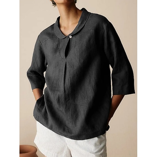 Per donna Camicie di cotone e lino Semplice Quotidiano Moderno Manica 3/4 Colletto a Camicia Top Regolari Quotidiano Bottoni Nero Arancione Marrone Cachi Grigio Estate Primavera Autunno