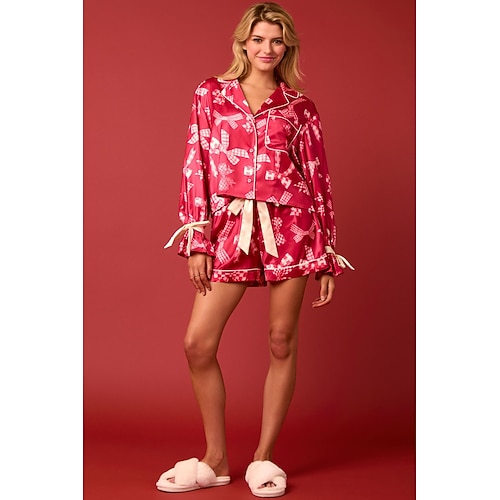 Pigiamoni di Babbo Natale Pigiama Satinato Costume Cosplay da Donna Adulti Festa di Capodanno Top Pantaloni Regalo di San Valentino per Lei