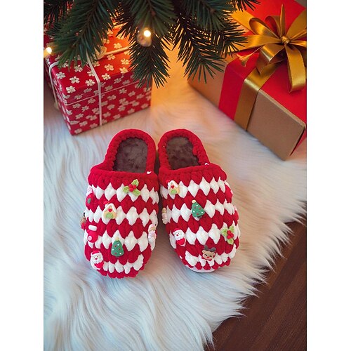 pantofole natalizie da donna con decorazioni di Babbo Natale e renne, comode pantofole rosse in peluche per le feste come regalo di Natale e comfort invernale