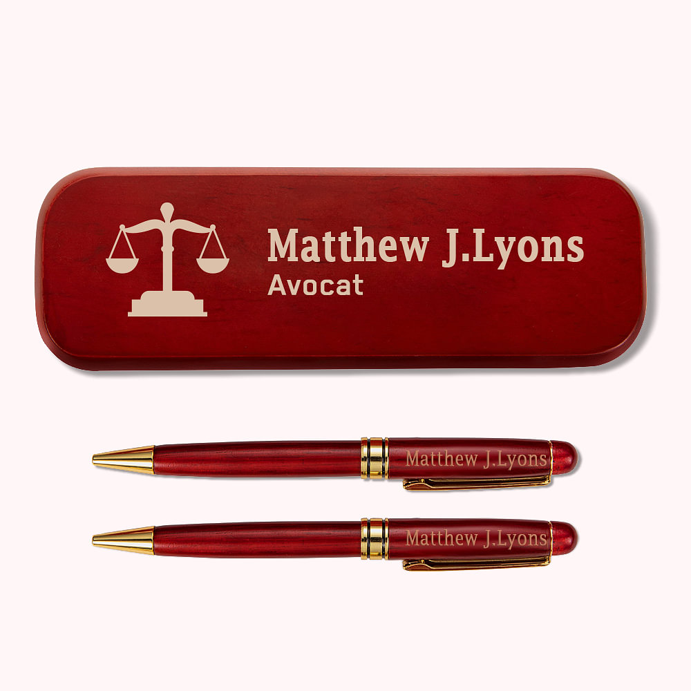 Set de Stylos Personnalisé avec Gravure sur Coffret et Stylo Logo Juridique Cadeau Remises des Diplômes Anniversaire pour Étudient en Droit Avocat