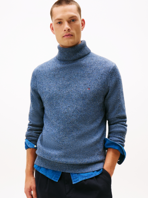 Tommy Hilfiger Rollkragenpullover "Donegal" Gr. S in blau | 70% Wolle