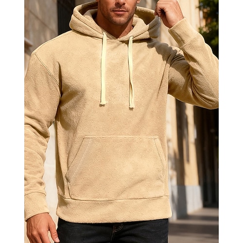 Per uomo Felpa con cappuccio Maglione Felpa con cappuccio in pile Nero Blu marino Cachi Grigio scuro Caffè Con Cappuccio Semplice Coulisse Tasca Sport Outdoor Casuale Quotidiano Streetwear