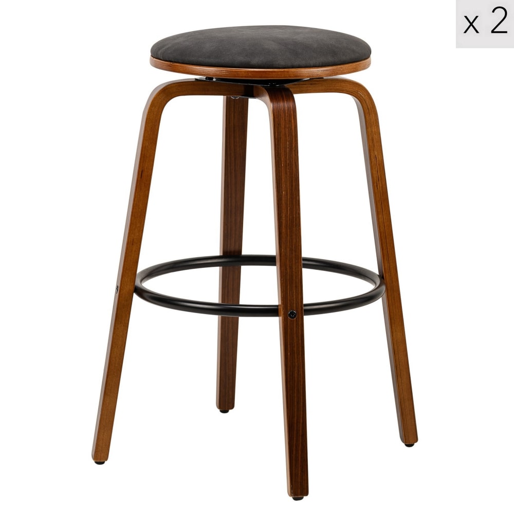 Set 2 alti sgabelli industriali in legno e tessuto nero