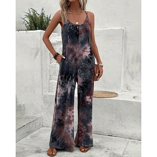 Per donna Normale Tuta Streetwear Tinta a nodi Senza Maniche Collo a U Stampato Streetwear Quotidiano Vestibilità regolare Blu Marrone Estate