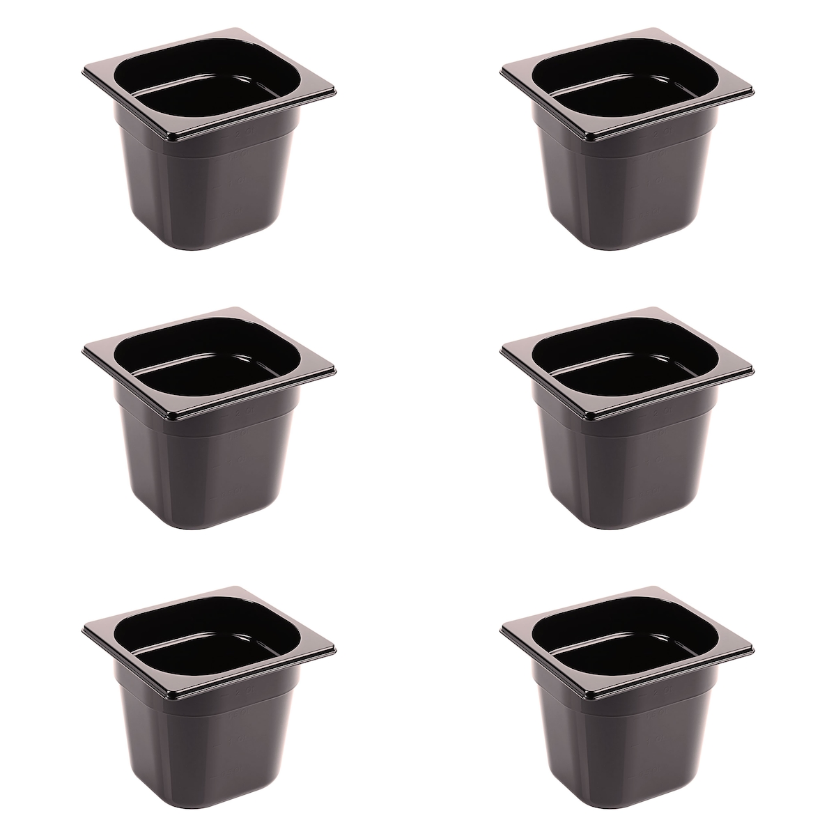 AcMax 6 Stück Kunststoff GN 1/6 Polycarbonat schwarz Gastronormbehälter GN-Behälter 2,4 Liter Tiefe 150mm
