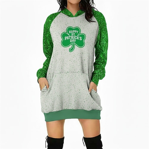 San Patrizio 2026 Trifoglio Irlandese fortunato Carnevale Felpa con cappuccio Innovativo Divertente Adulti Per donna Giorno di San Patrizio Casuale Feste Costume di Carnevale facile Vestirsi