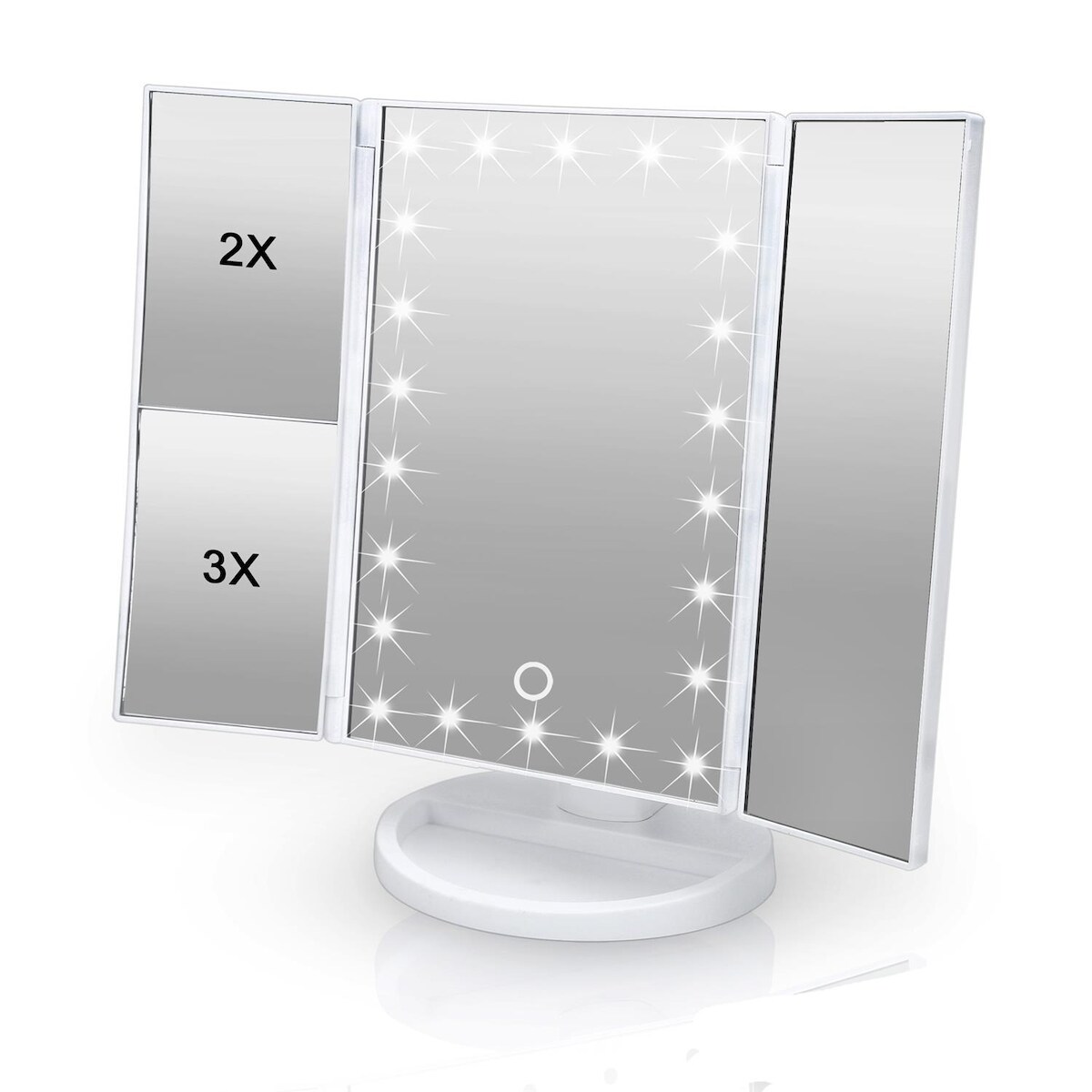 Intirilife Schminkspiegel mit LED und USB Kabel zum Aufladen in Weiß - 28 x 18 x 11.7 cm - Beleuchteter Kosmetikspiegel Makeup Tischspiegel Klappbar