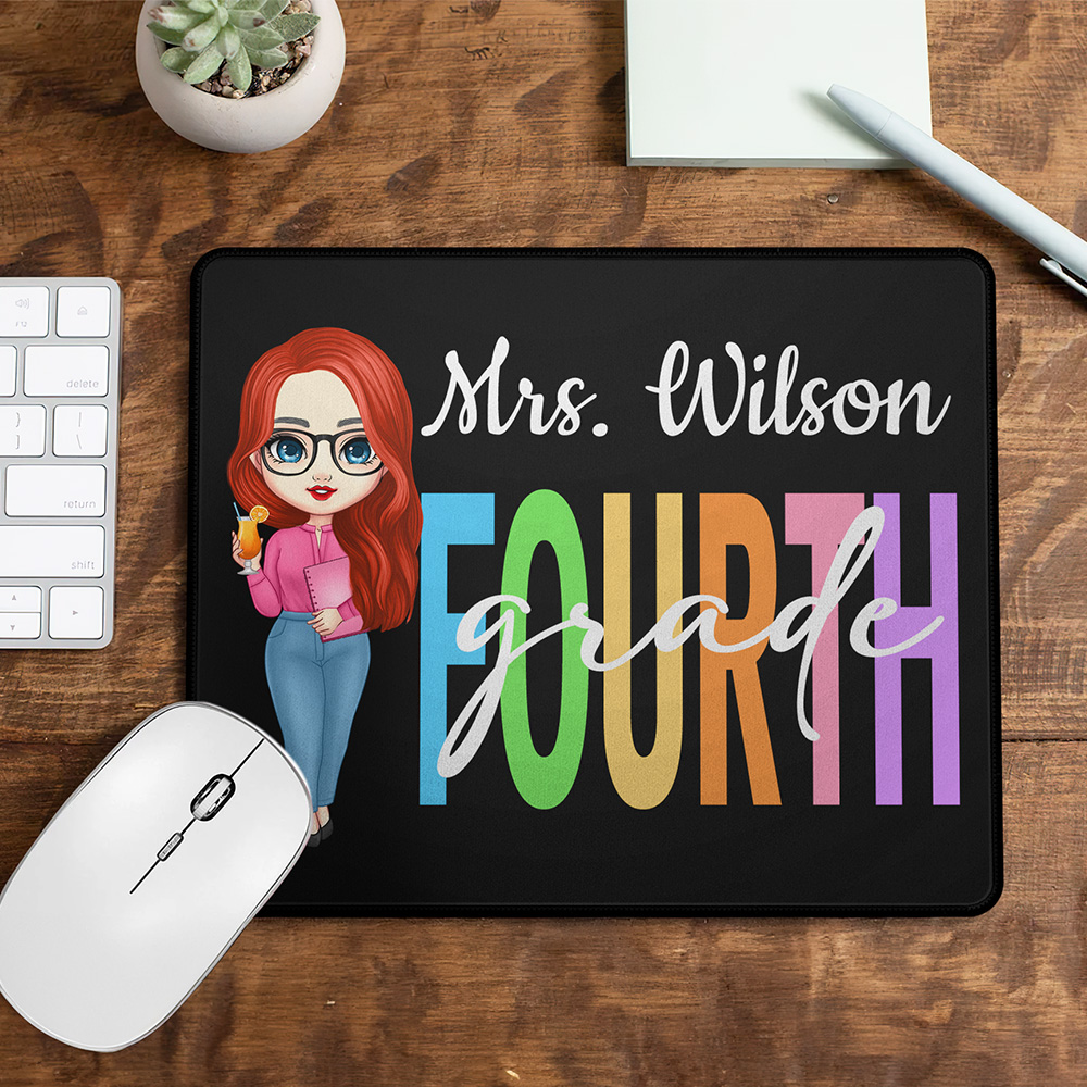 Personalizzato Cartoon Grade Insegnante Tappetino per mouse antiscivolo con nome Multicolore Accessori per computer Apprezzamento Regalo di ritorno a scuola per l'insegnante