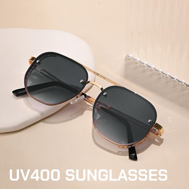 Luxe zonnebril met dubbele brug, modieus groot montuur en uitsparingen aan de zijkant, geschikt voor buiten, UV400, klassieke zonnebril voor autorijde