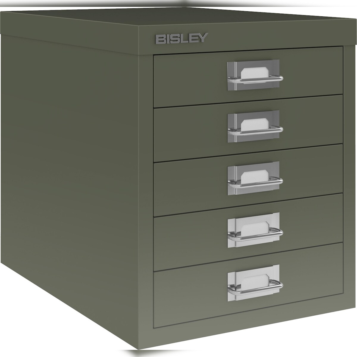 BISLEY Schubladenschrank aus Metall für DIN A4 in olivgrün Schrank mit 5 Schubladen Büroschrank Werkzeugschrank - B-L125-623
