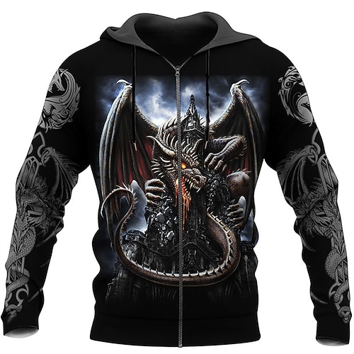 Per uomo Drago Stampe Grafiche Felpa con Cappuccio Felpe con cappuccio Felpa Streetwear Designer Casual Grande e Alto Manica Lunga Con Cappuccio Sport Outdoor Quotidiano Sportivo Ferie Bianco