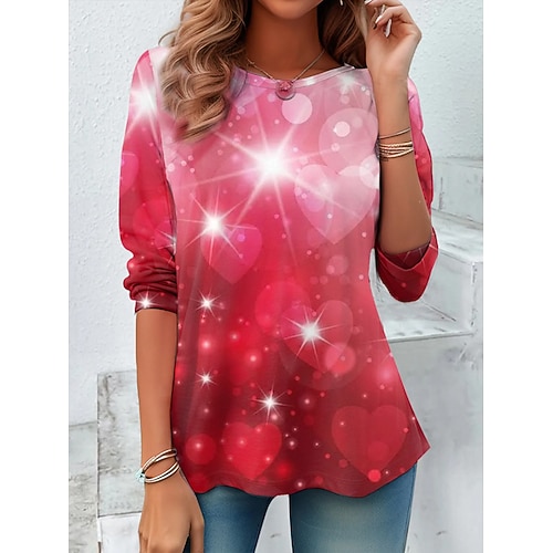 San Valentino Per donna Maglietta Cuore Grafico Vintage Elegante Casual Manica Lunga Girocollo Top Regolari Quotidiano Weekend Stampato Rosa Rosso Primavera Inverno