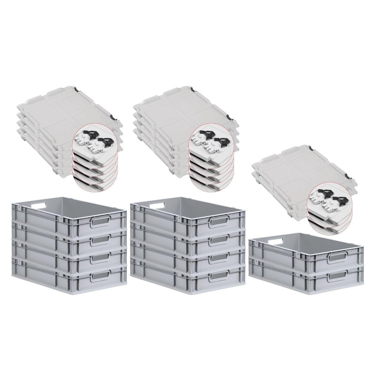 PROREGAL SuperSparSet 10x Eurobox NextGen Economy mit Scharnierdeckel & schwarzen Verschlüssen, Griffe offen, HxBxT 12x40x60cm, 23L, Eurobehälter, Box