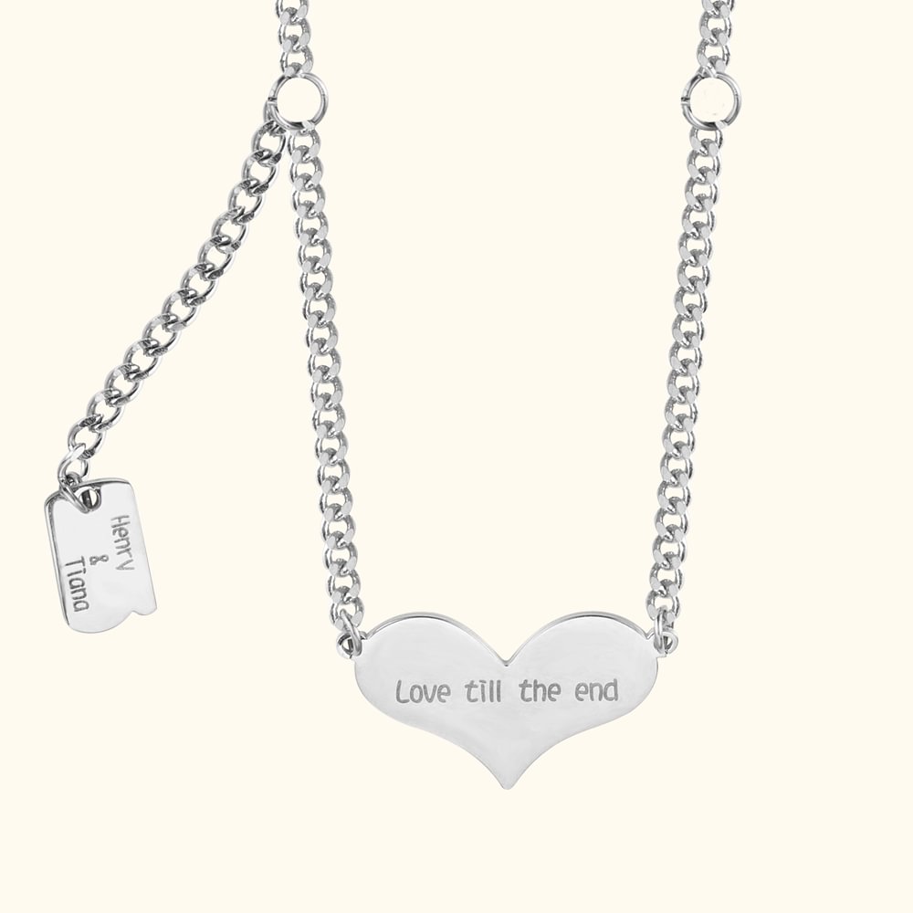 Collana per coppie con disco quadrato a forma di cuore personalizzato
