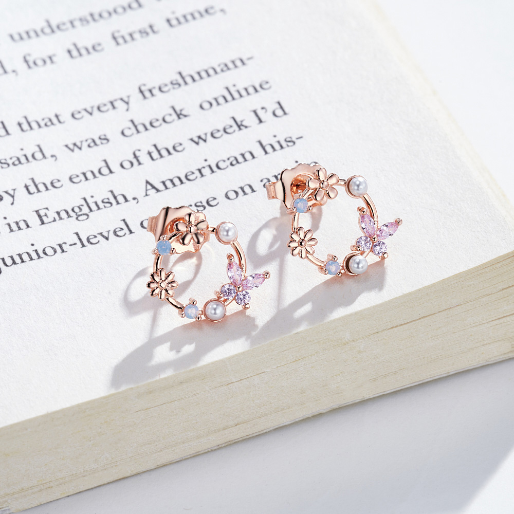 Orecchini a perno personalizzati minimalisti a farfalla con pietre di nascita, regalo di compleanno per San Valentino per le donne