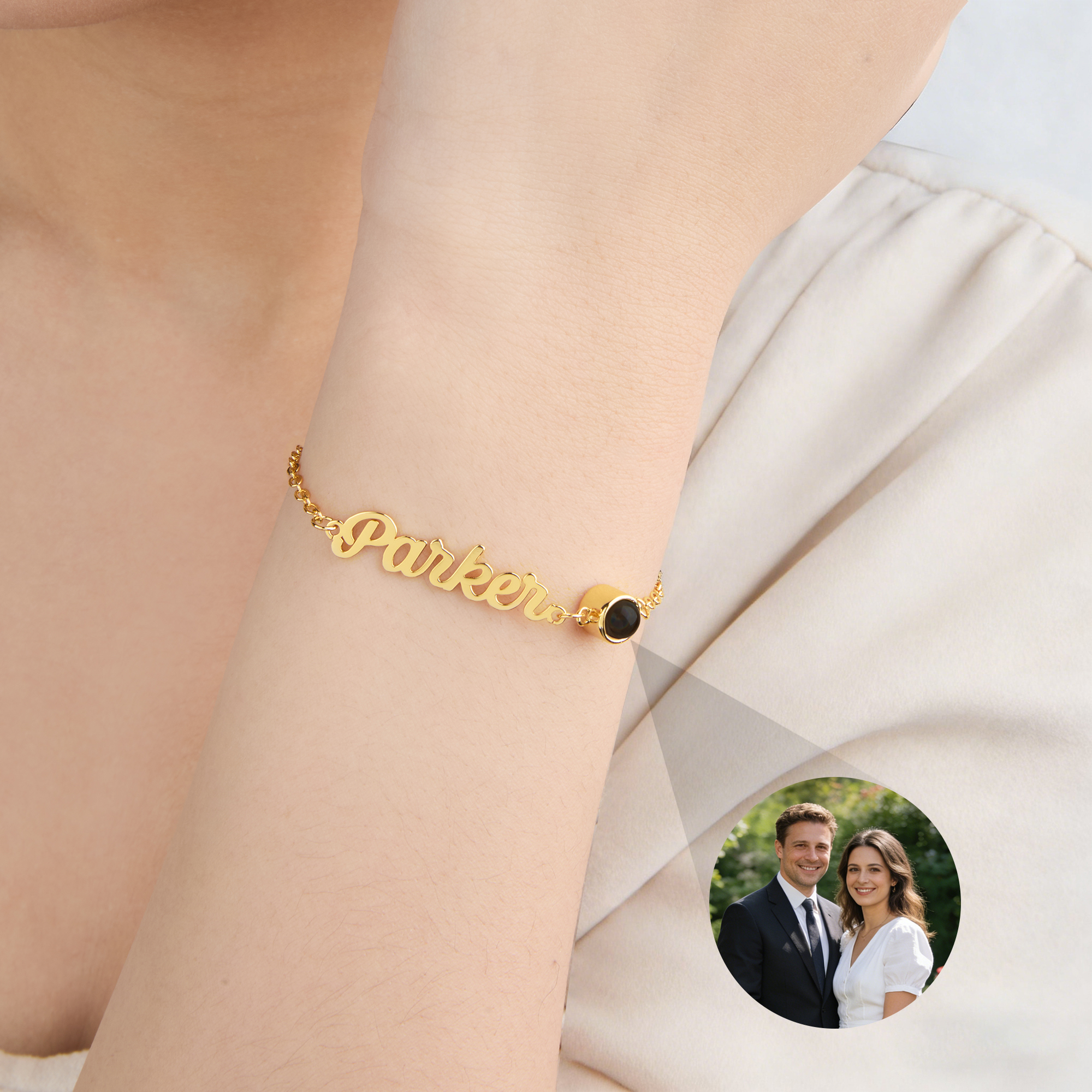 Bracciale a catena regolabile con nome personalizzato con proiezione di foto, gioielli di pregio Regalo per la festa della mamma e della memoria per la nonna