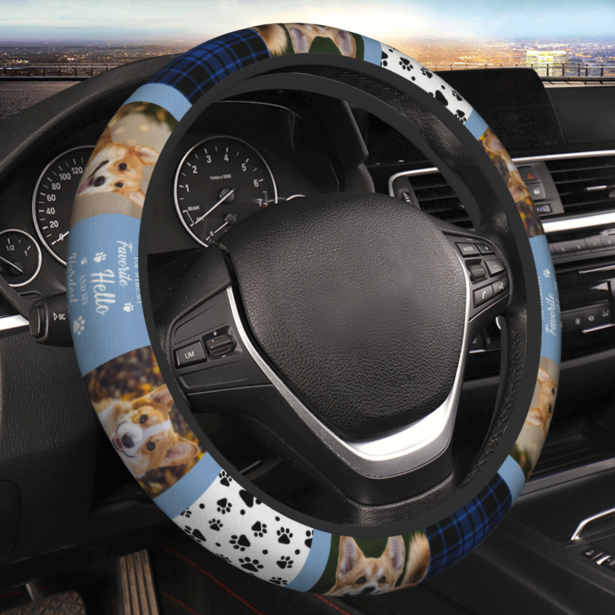 Gepersonaliseerde 3 Pet Foto Plaid Design Stuurwielhoes met Naam Verjaardag Verjaardag Cadeau voor Pet Lovers Autobezitters