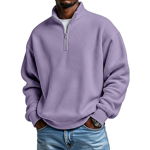 Per uomo Magliette Polo a Nido d'Ape Polo Vacanza Streetwear Zip a un quarto Manica Lunga Moda Essenziale Semplice Primavera Autunno Vestibilità regolare Viola blu navy Aalbicocca Nero Bianco Vino