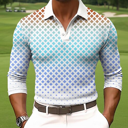 Per uomo Plaid Magliette Polo a Nido d'Ape Manica Lunga Magliette polo Bavero Casual Scuola Athleisure Abbigliamento quotidiano Stampa 3D Primavera Autunno Marrone chiaro Marrone Grigio