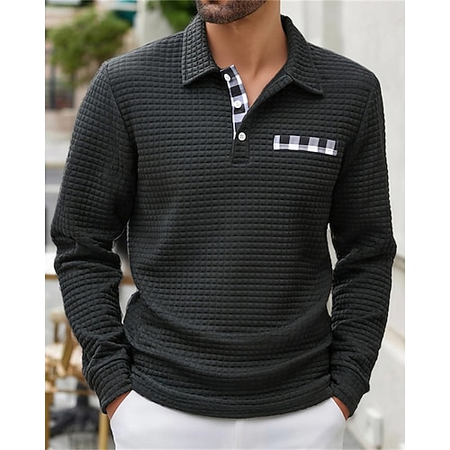 Per uomo Plaid Magliette Polo a Nido d'Ape Maglia da golf Manica Lunga Magliette polo Camicie con Colletto Vintage Casual Abbigliamento da vacanza Abbigliamento Formale Abbigliamento da festa Bottoni