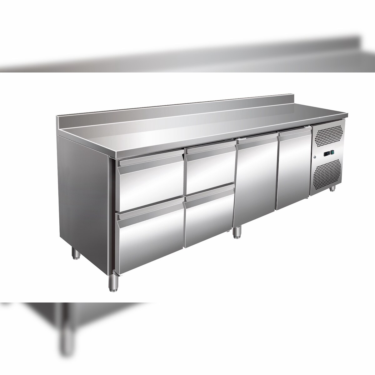A&S polarny Edelstahl Kühltisch Kühltheke 2 Türen / 4 Schubladen 241 L -2/+8°C Aufkantung