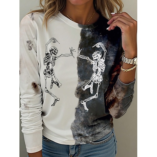 T Shirt da donna Teschi Grafica Moda Vintage Causale Manica Lunga Collo Girotondo Magliette Regolari Giorno del Weekend Stampa Rossa Blu Viola Verde Grigio Autunno Inverno