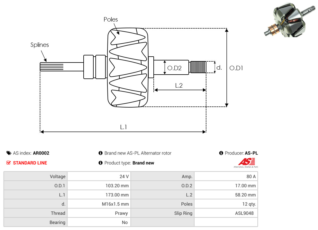 AS-PL Läufer, Generator AR0002 Universal 24V 80A 103,20mm