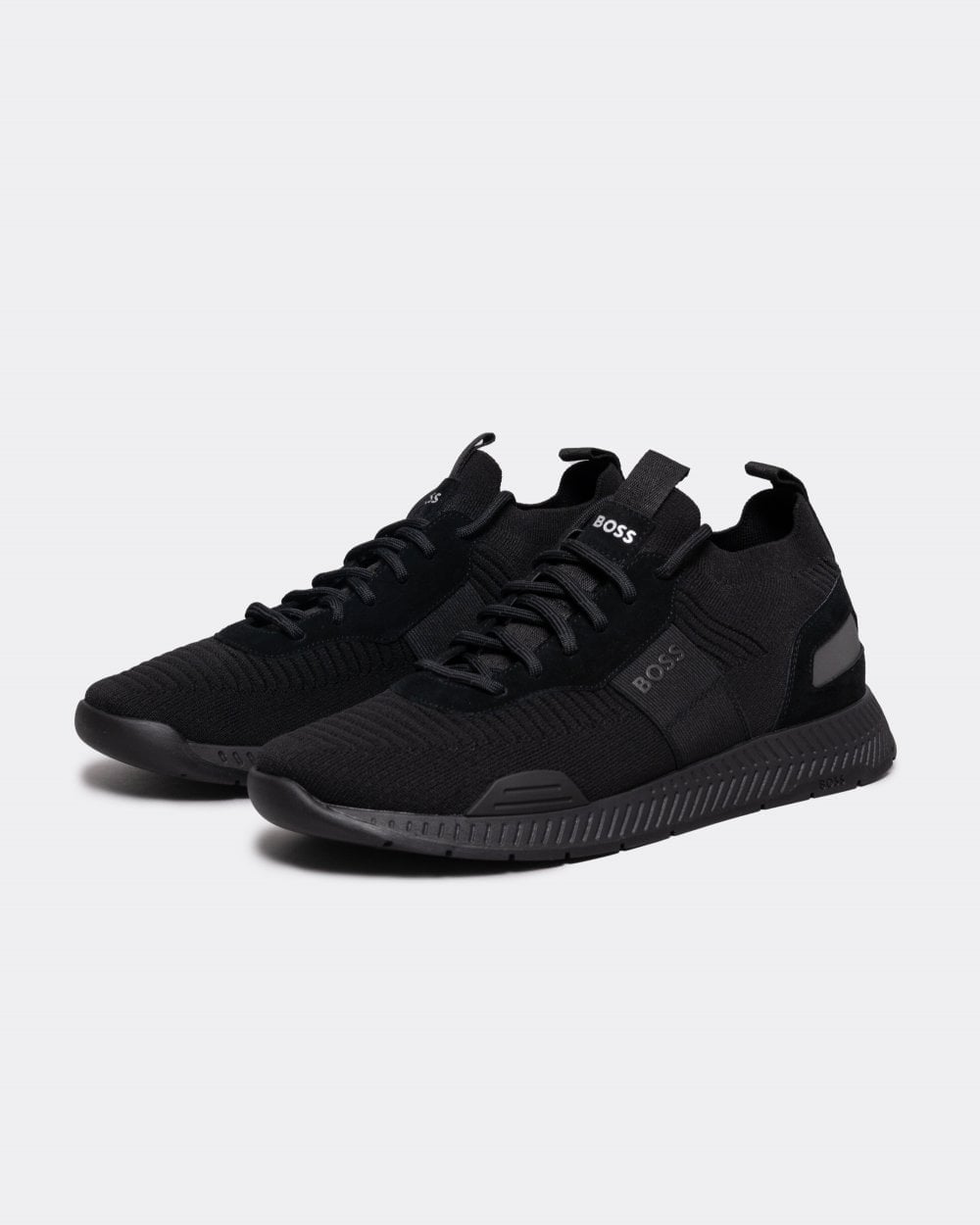 Boss Orange Titanium_runn Mens Structured-knit Sock Trainers With Branding Nos - Black Rubber - Size UK 11