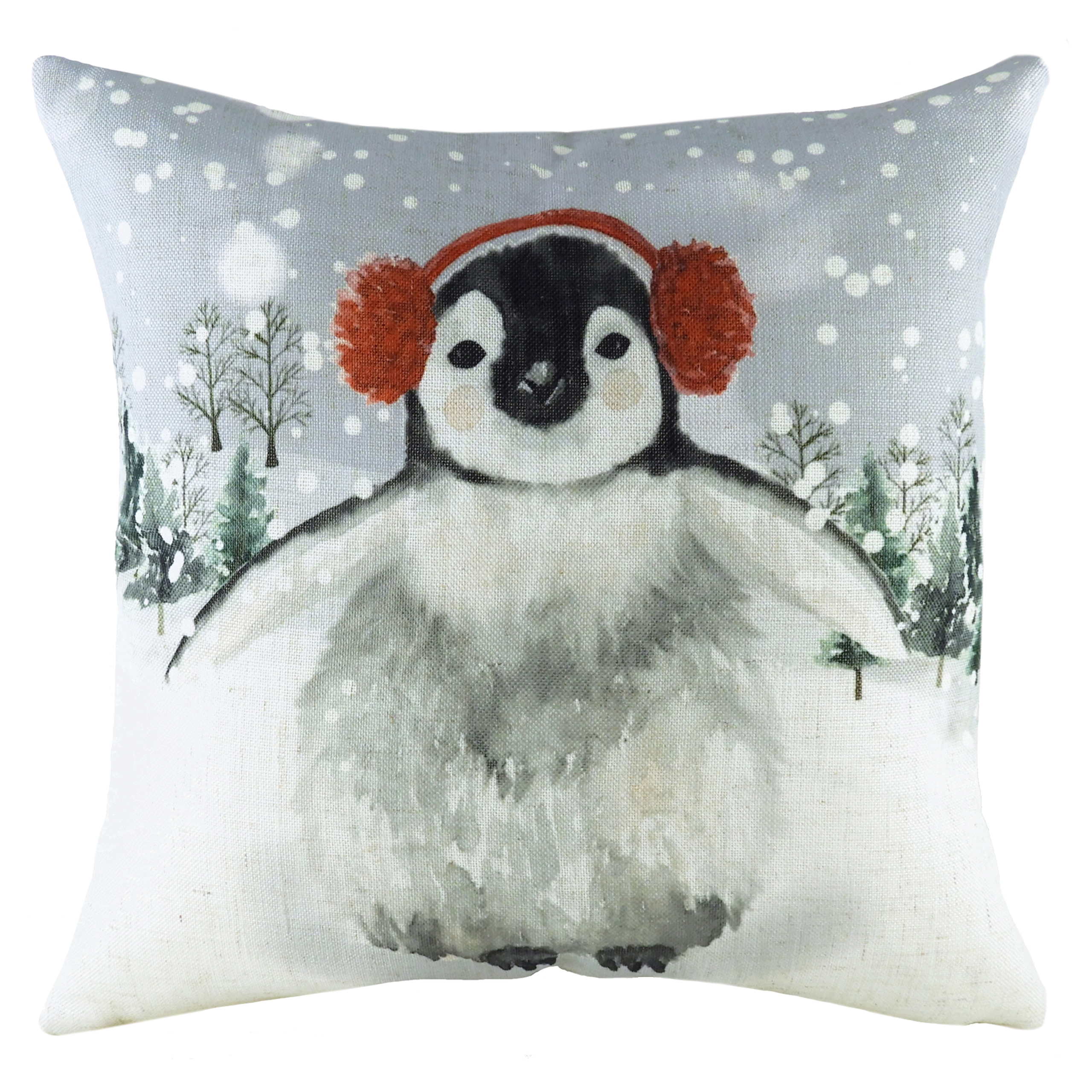 Evans Lichfield Snowy Penguin With Earmuffs Cushion - Multicolour - Size 43 cm x 43 cm | Evans Lichfield Sale | Discount Designer Brands
