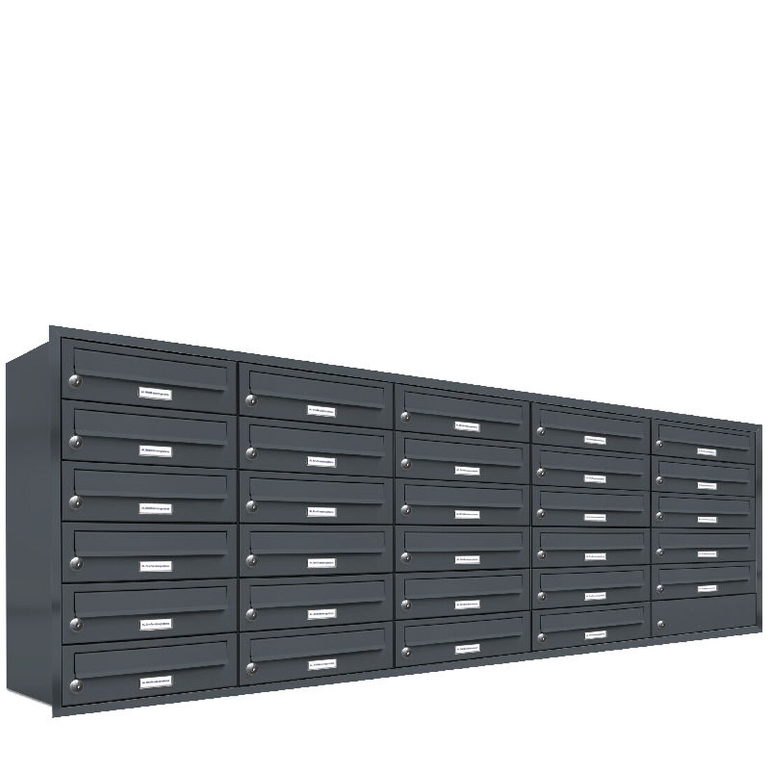 AL Briefkastensysteme 29 Fächer Premium Unterputz Briefkasten Anlage RAL 7016 Anthrazit Grau, Post A4, modern, wetterfest, Artikelnummer 132P29U5P7016