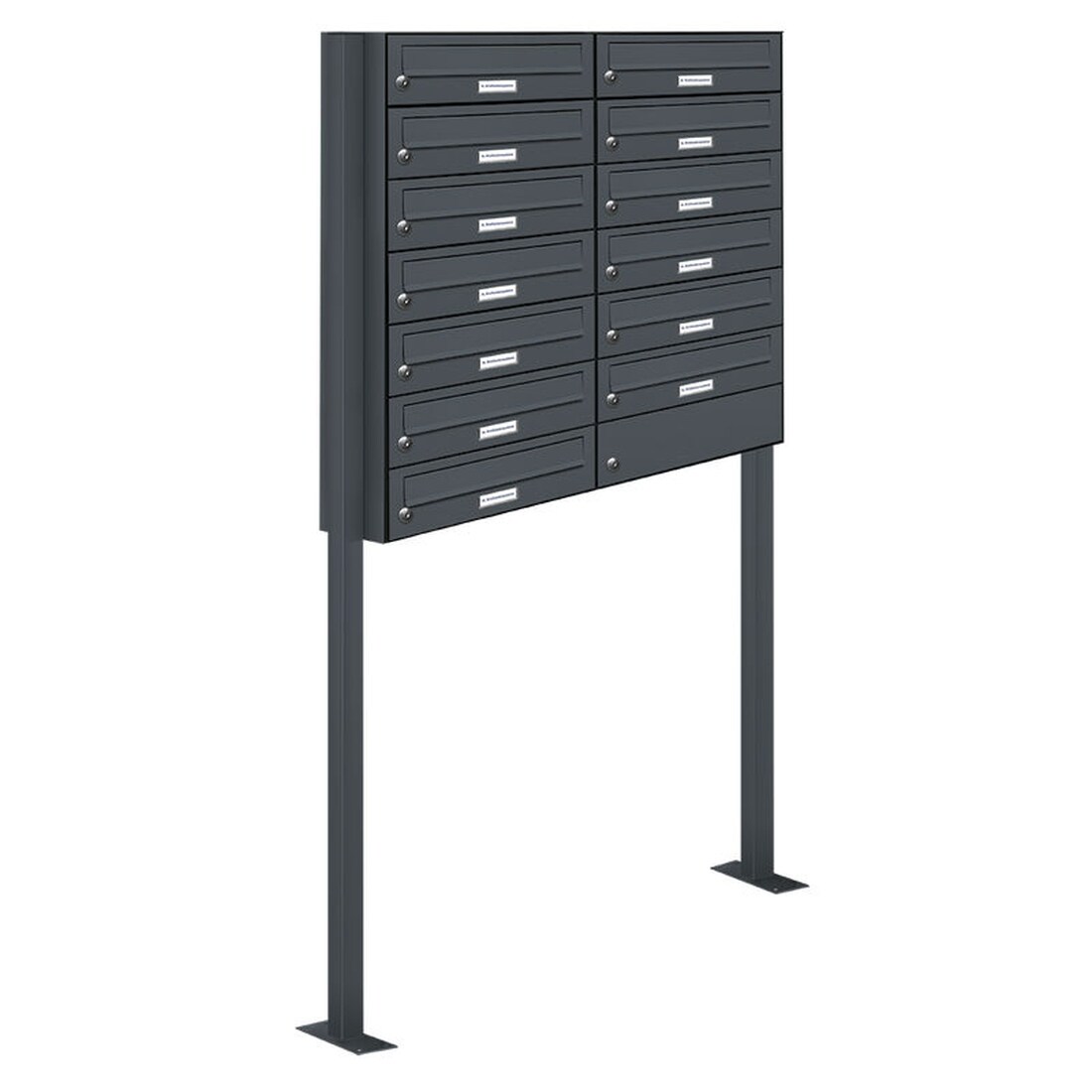 AL Briefkastensysteme 14 Fächer Premium Stand Briefkasten Anlage in RAL 7016 Anthrazit für Post A4, robust, wetterfest, Artikelnummer: 132P14S2KSP7016