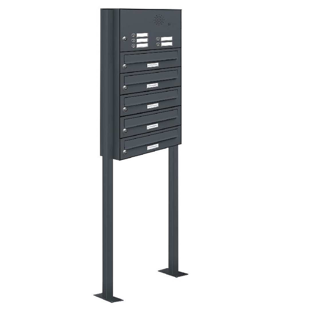 AL Briefkastensysteme 5 Fächer Premium Stand Briefkasten Anlage in RAL 7016 Anthrazit für Post A4, robust, wetterfest, Artikelnummer: 132P5S1KSP7016