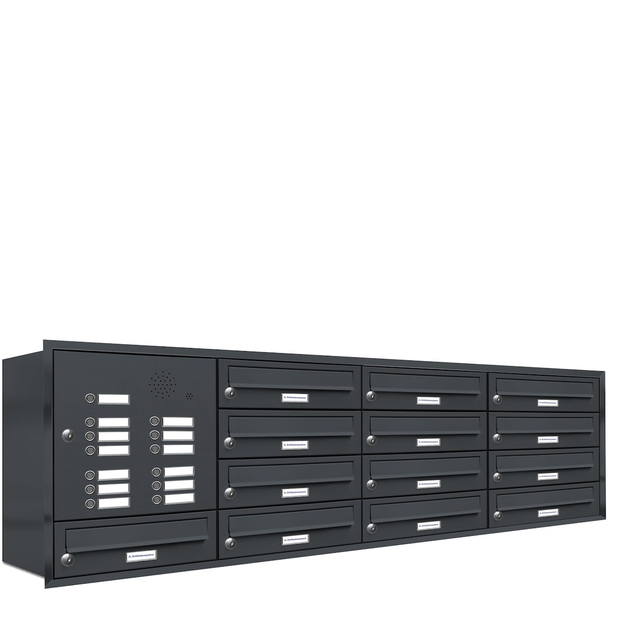 AL Briefkastensysteme 13 Fächer Premium Unterputz Briefkasten Anlage RAL 7016 Anthrazit Grau, Post A4, wetterfest, Artikelnummer: 132P13U4KSP7016