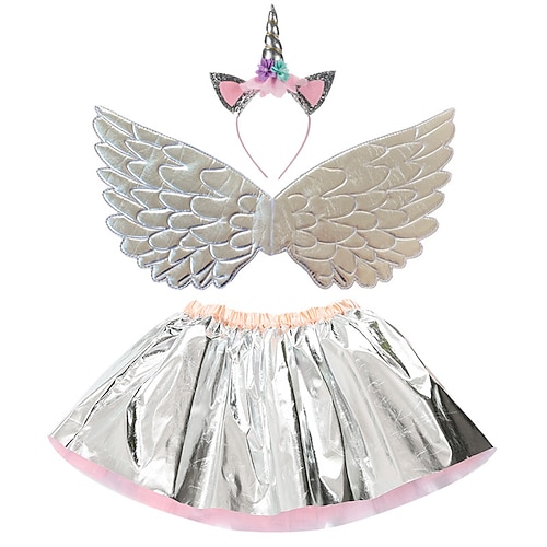 vestito unicorno per ragazze film cosplay vestito da vacanza capodanno vestito blu scuro argento dorato ali copricapo natale halloween carnevale poliestere poliestere / cotone giornata mondiale del