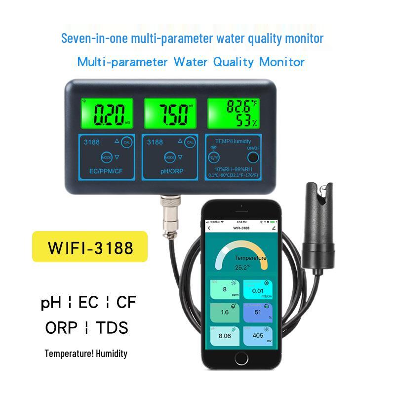 WiFi Tuya 7-in-1 Intelligenter Wasserqualitätsmonitor: TDS, Leitfähigkeit, Aquarium, Aquakultur pH, Alkalinität, ORP-Messgerät