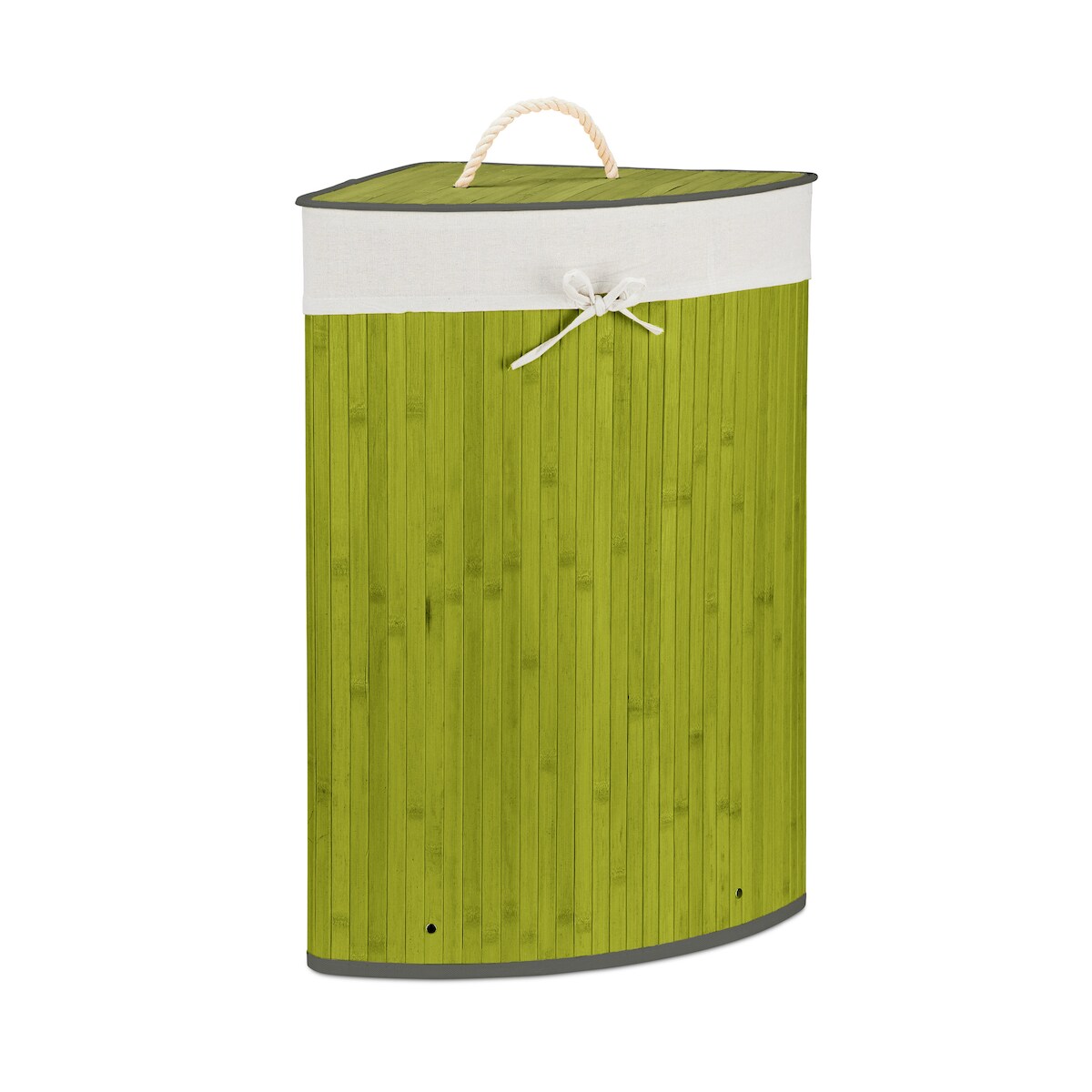 Relaxdays Eckwäschekorb Bambus, faltbare Wäschebox 60 l, platzsparend, Wäschesack Baumwolle, HBT 65 x 49,5 x 37 cm, grün