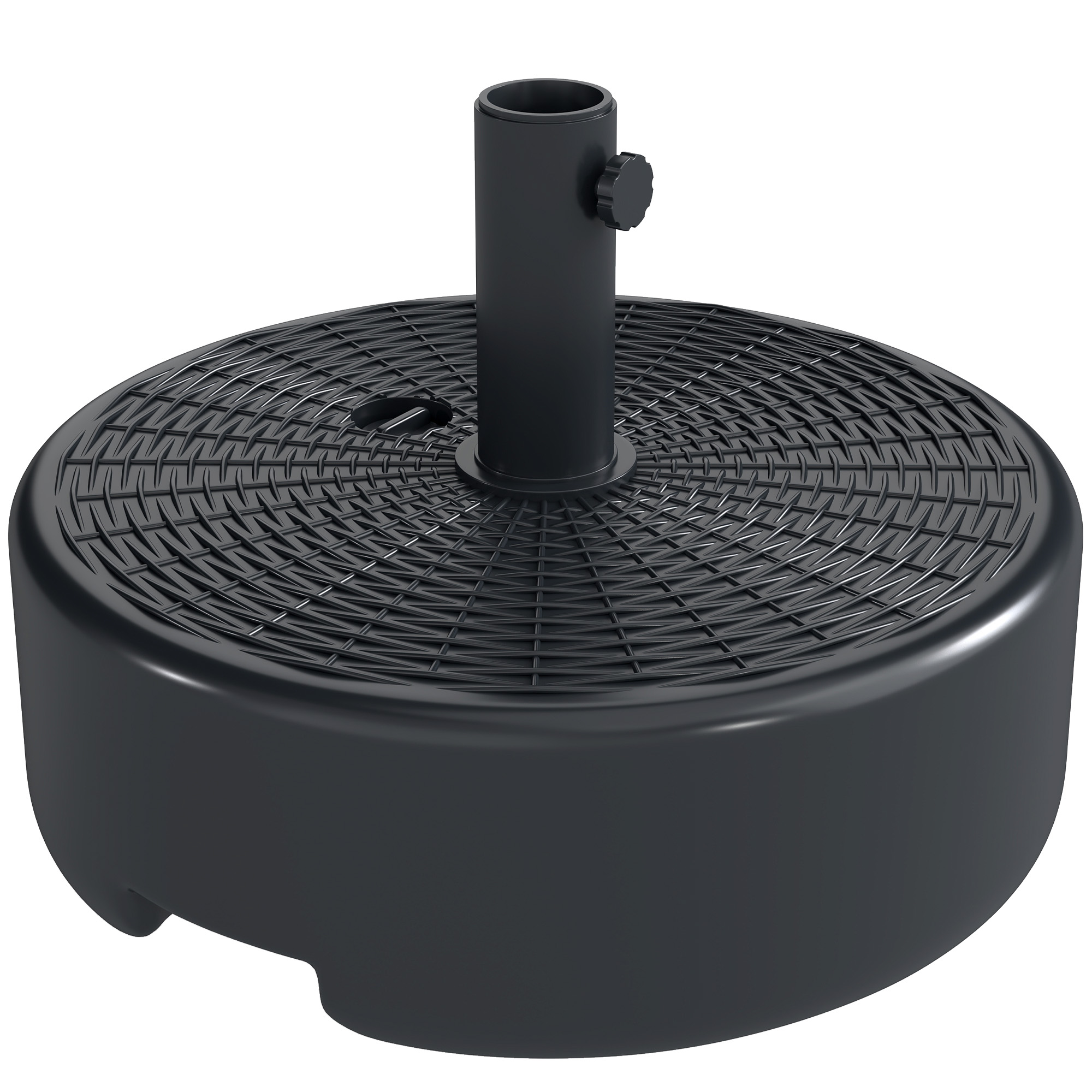 Outsunny Round Garden Parasol Base, Garden Umbrella Stand Heavy Duty Parasol Base, Filled Up to 20kg with Stand or 18kg with Water, Black