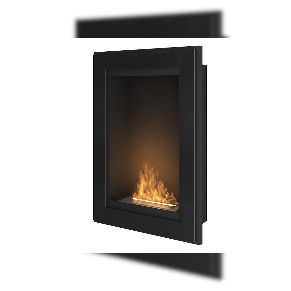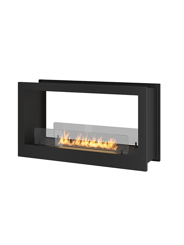 OutInFire RAME 600 – Schwarzer eingebauter Biokamin mit Schutzglas. Wandmontierter Bioethanolkamin