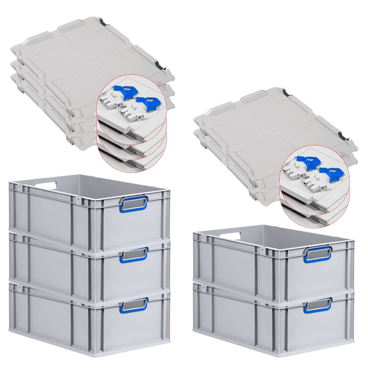 PROREGAL 10x Eurobox NextGen Color mit Scharnierdeckel & Verschlüssen | HxBxT 32x40x60cm | 65 Liter | Griffe blau offen | Verstärkter Boden