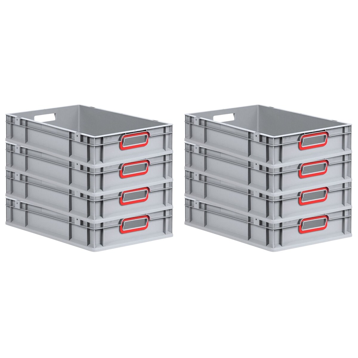 PROREGAL 8x Eurobox NextGen Color | HxBxT 12x40x60cm | 23 Liter | Griffe rot offen | Glatter Boden | Eurobehälter