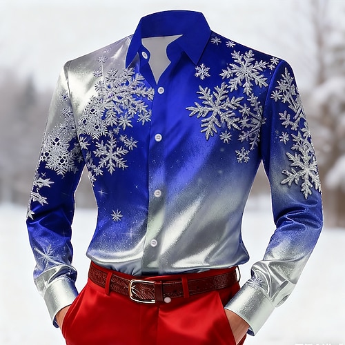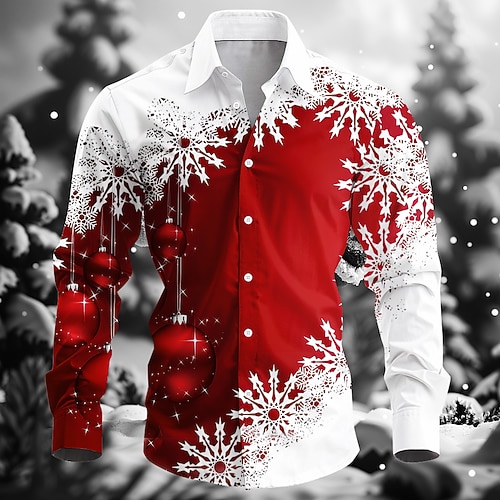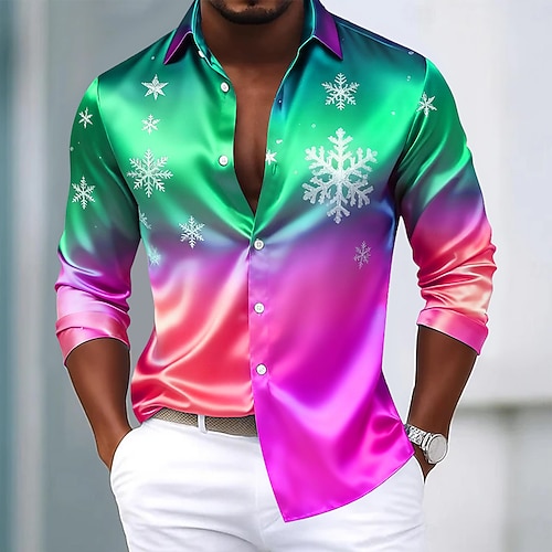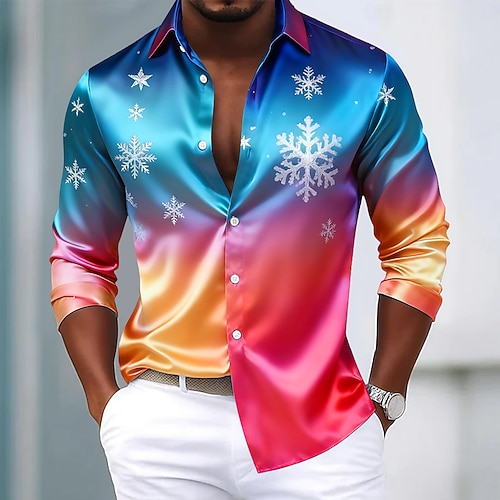 Natale Per uomo Fiocco di neve Colore sfumato Camicia Camicia in raso Camicia elegante Manica Lunga Moda Casual All'aperto Feste Ferie Primavera Autunno Collo ripiegato Stampa 3D Camicie con bottoni