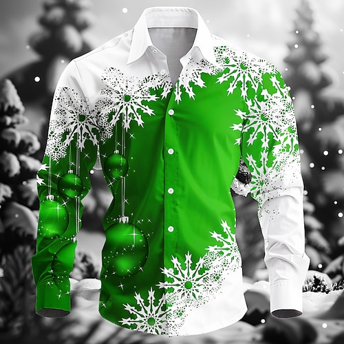 Natale Per uomo Fiocco di neve Palline di Natale Camicia Camicia in raso Camicia elegante Manica Lunga Moda Casual All'aperto Ferie Primavera Autunno Collo ripiegato Stampa 3D Camicie con bottoni