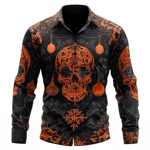 Per uomo Teschio Fiocco di neve Luci natalizie Camicia Camicia con Bottoni Manica Lunga Gotico punk oscuro All'aperto Ferie Estate Primavera Collo ripiegato Stampa 3D camicie con colletto Rosso Viola