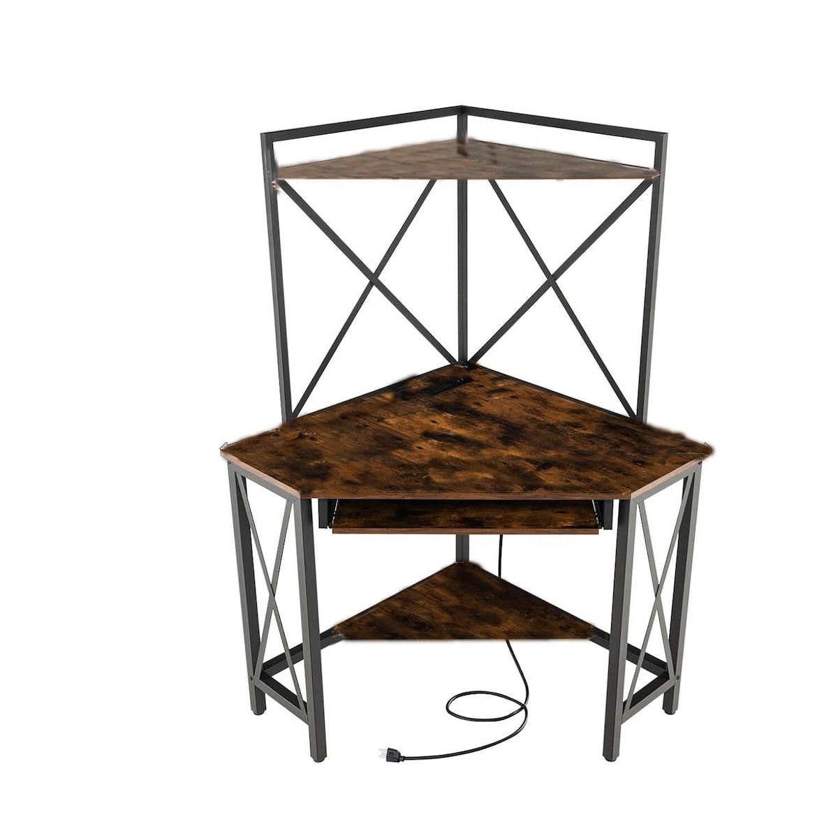 COSTWAY Schreibtisch mit Ladestation, Eck-Computertisch mit Tastaturablage und 2 Regalen, Bürotisch mit Metallgestell, Arbeitstisch