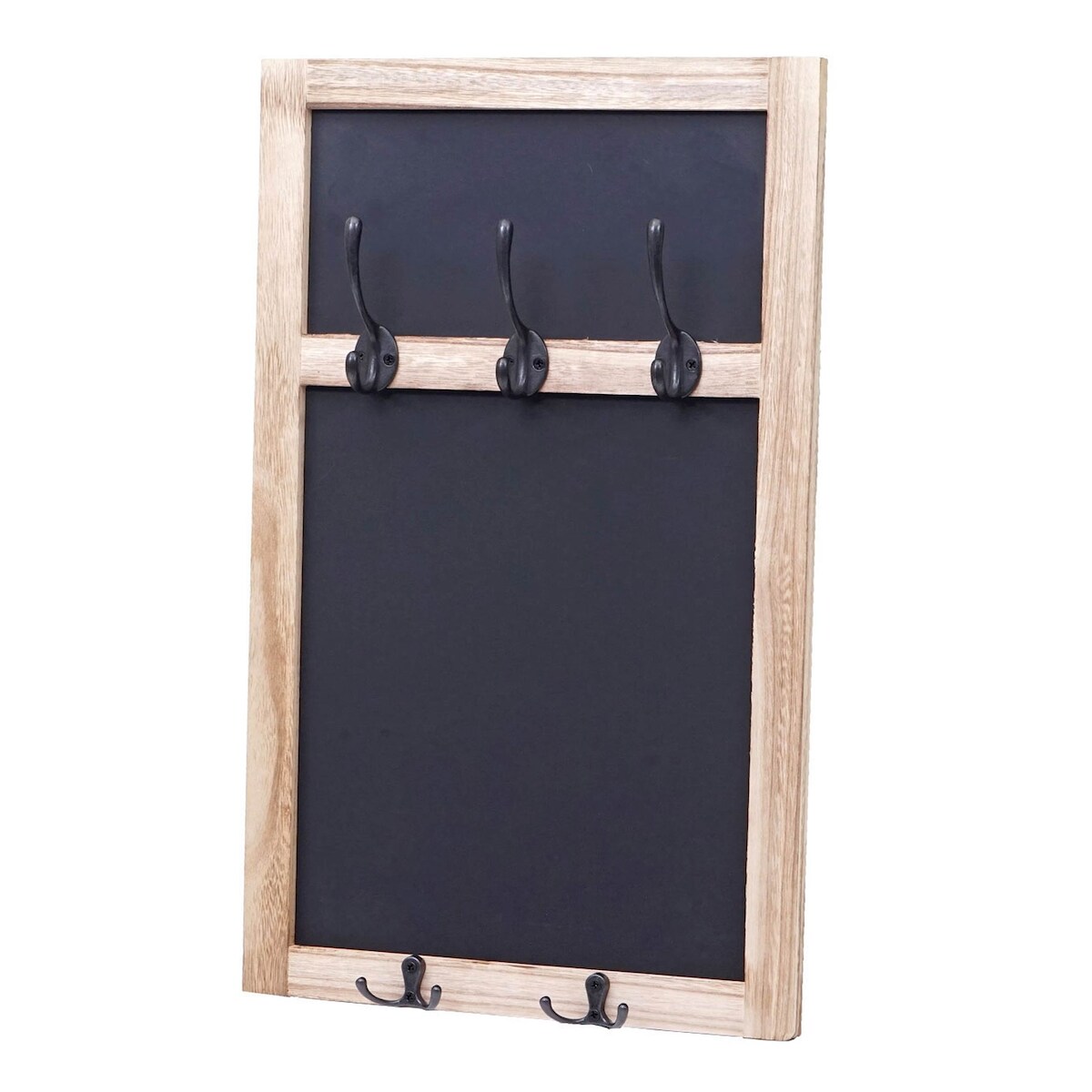 Mendler Wandgarderobe HWC-C51, Garderobe Kreidetafel Wandtafel, 5 Haken 55x34cm ~ naturbraun