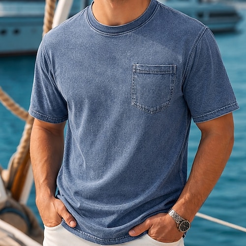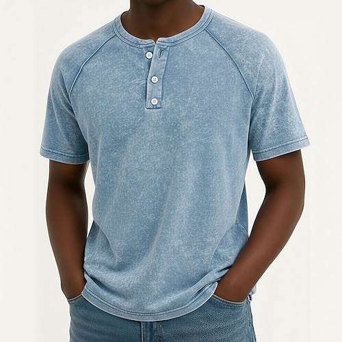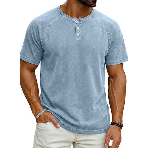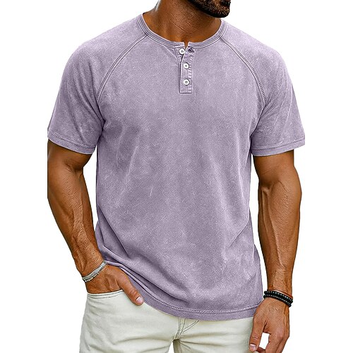 Per uomo Tartaruga di mare Lavato Maglietta Top Henley Camicia lavata Manica Corta Vintage Designer Casual Casuale Quotidiano All'aperto Estate Primavera Tutte le stagioni Blu chiaro Viola Grigio