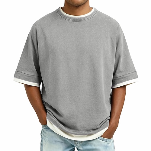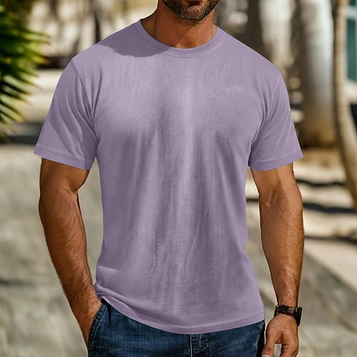 Per uomo Maglietta di cotone Camicia lavata Manica Corta Girocollo Estate Primavera Semplice Retrò Vintage Casual Angosciato Stile Vintage Lavato Casuale Blu Viola Grigio Maglietta Top per Uomo