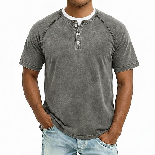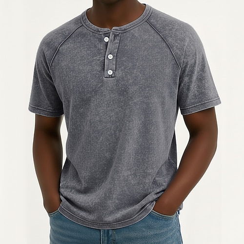 Per uomo Maglietta Top Henley Maglietta di cotone Camicia lavata Manica Corta Tinta unica Semplice Tinta unita Vintage Designer Casual Bottoni Henley Casuale Quotidiano All'aperto Estate Primavera