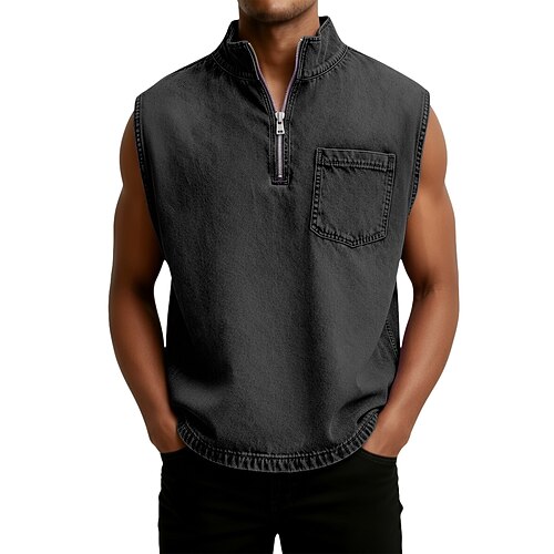 Per uomo Canotta Camicia di Jeans Camicia lavata con acido Senza Maniche Collo alla coreana Henley Estate Primavera Semplice Vintage Streetwear Casual Lavato angosciato Casuale Casa Streetwear Nero